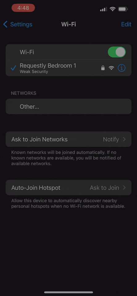 To ensure the proxy is set up correctly, open Safari on your device and visit http://amiusing.requestly.io. If the page loads with a success message, the proxy is successfully configured and ready to intercept network traffic.